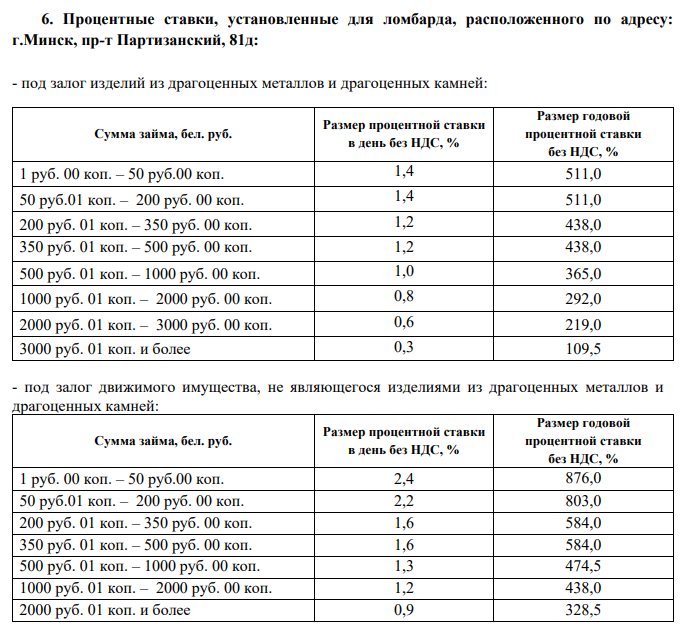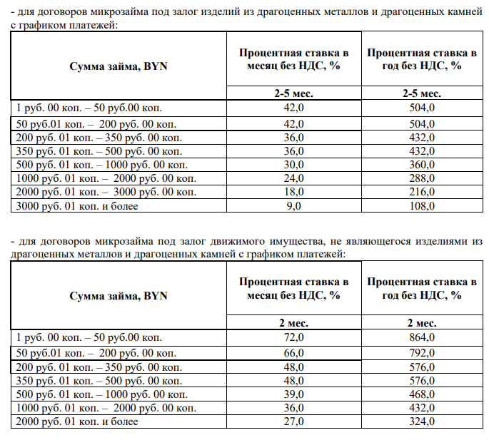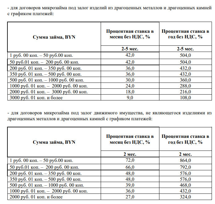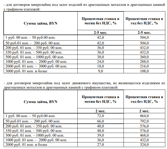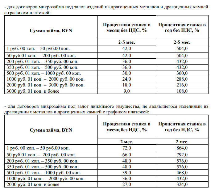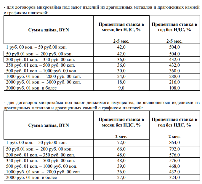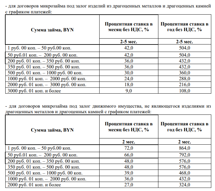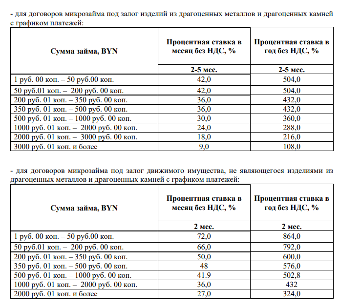 - для договоров микрозайма под залог изделий из драгоценных металлов и драгоценных камней