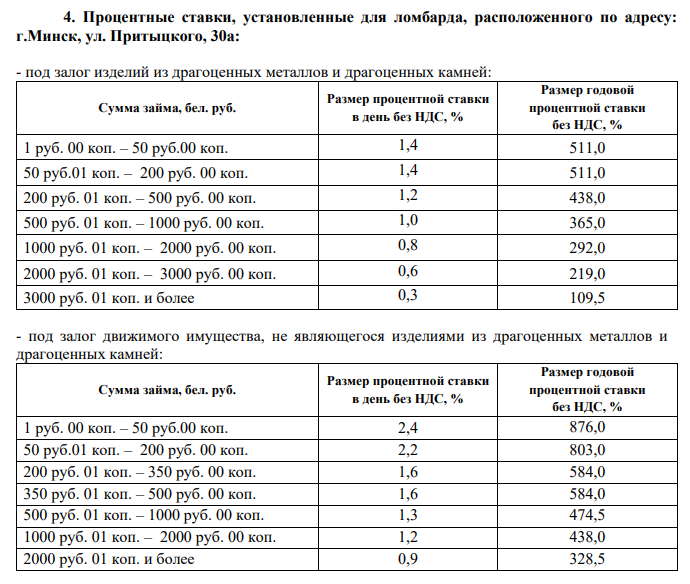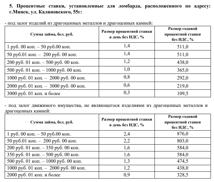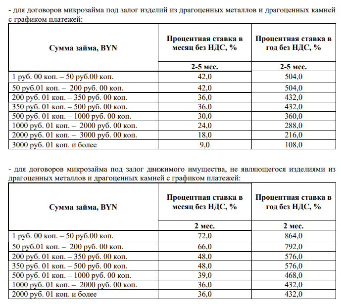 пониженные ставки - минус 20% от процентных ставок, установленных для ломбардов согласно