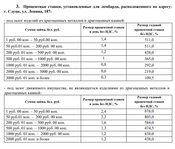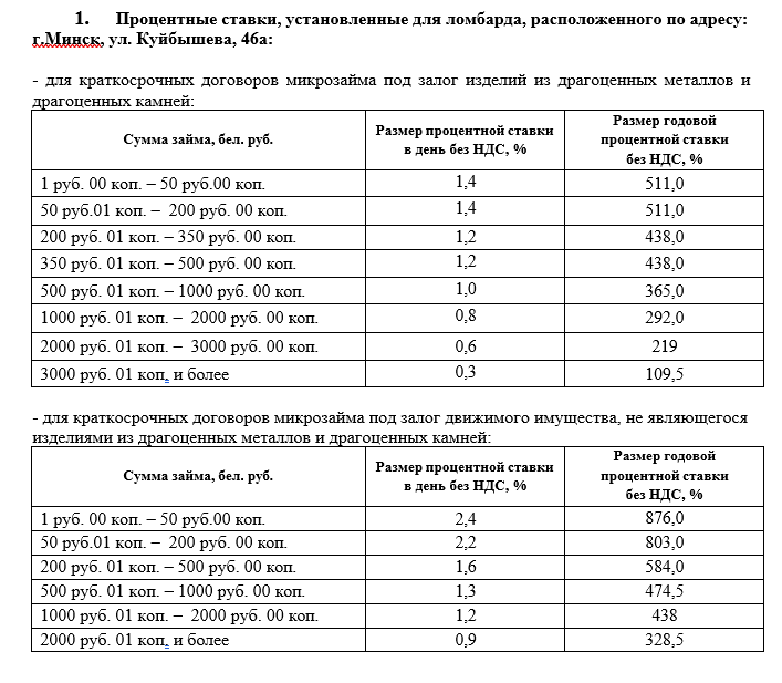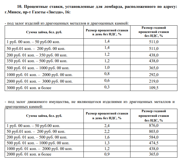 пониженные ставки - минус 10% от процентных ставок, установленных для ломбардов согласно