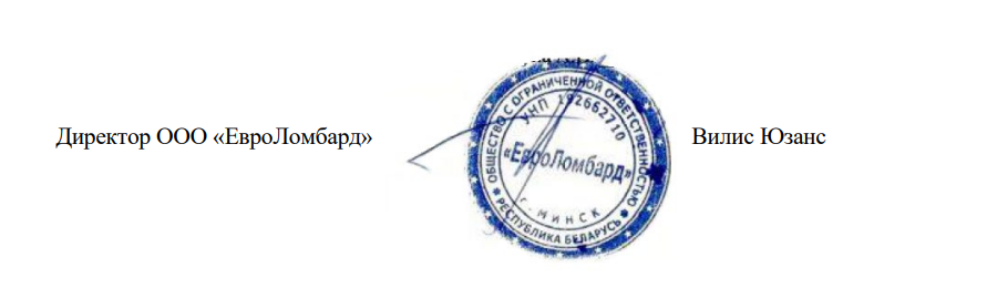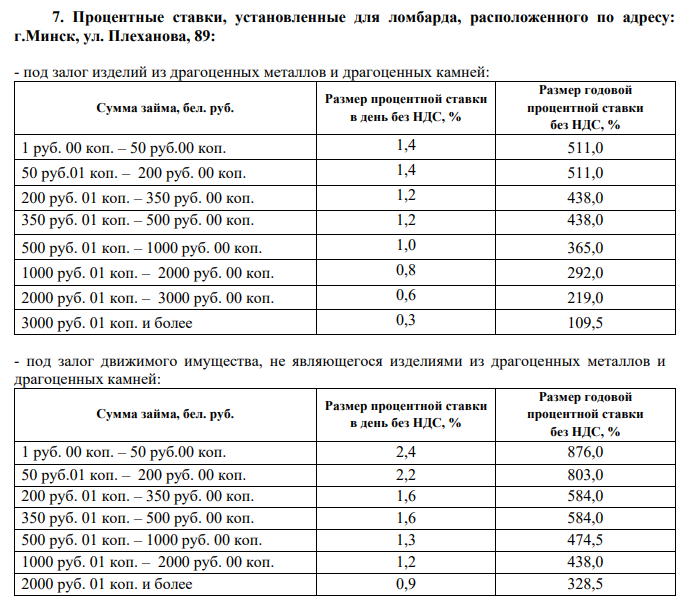 ломбардов согласно приложению №2 Правил;