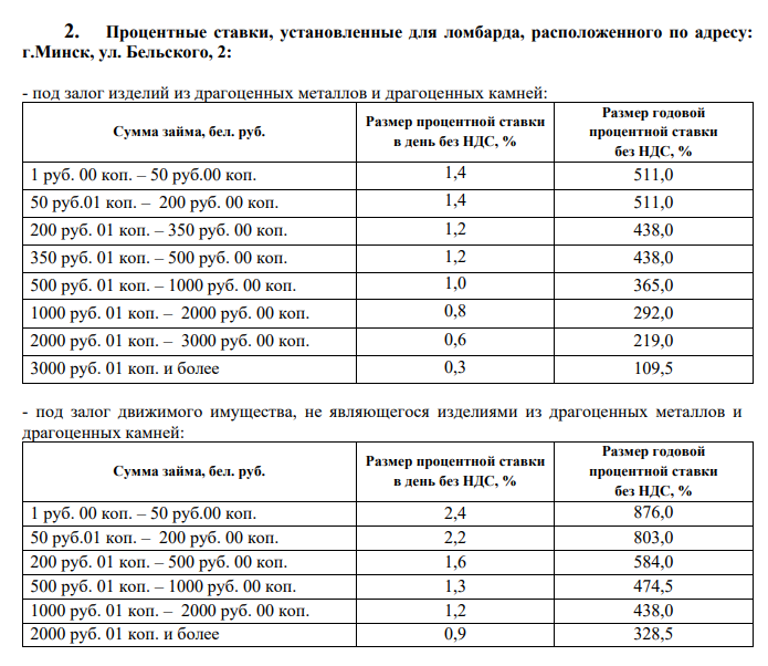 2.1. при заключении договора микрозайма под залог изделий из драгоценных металлов и