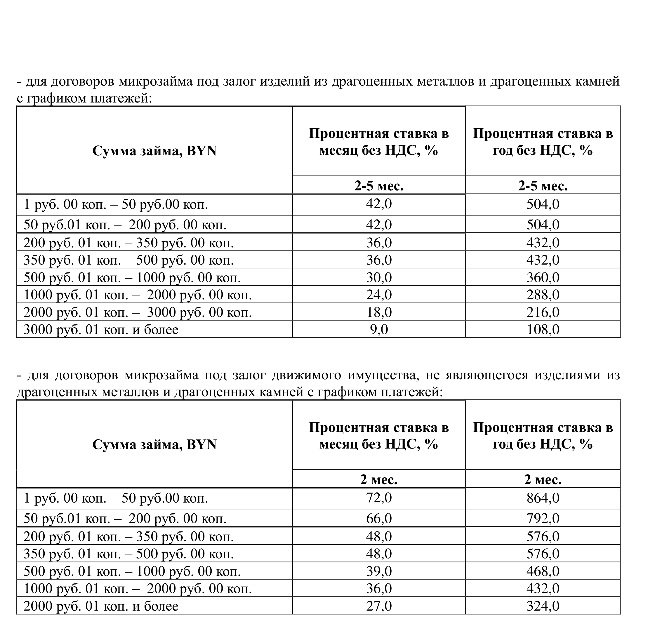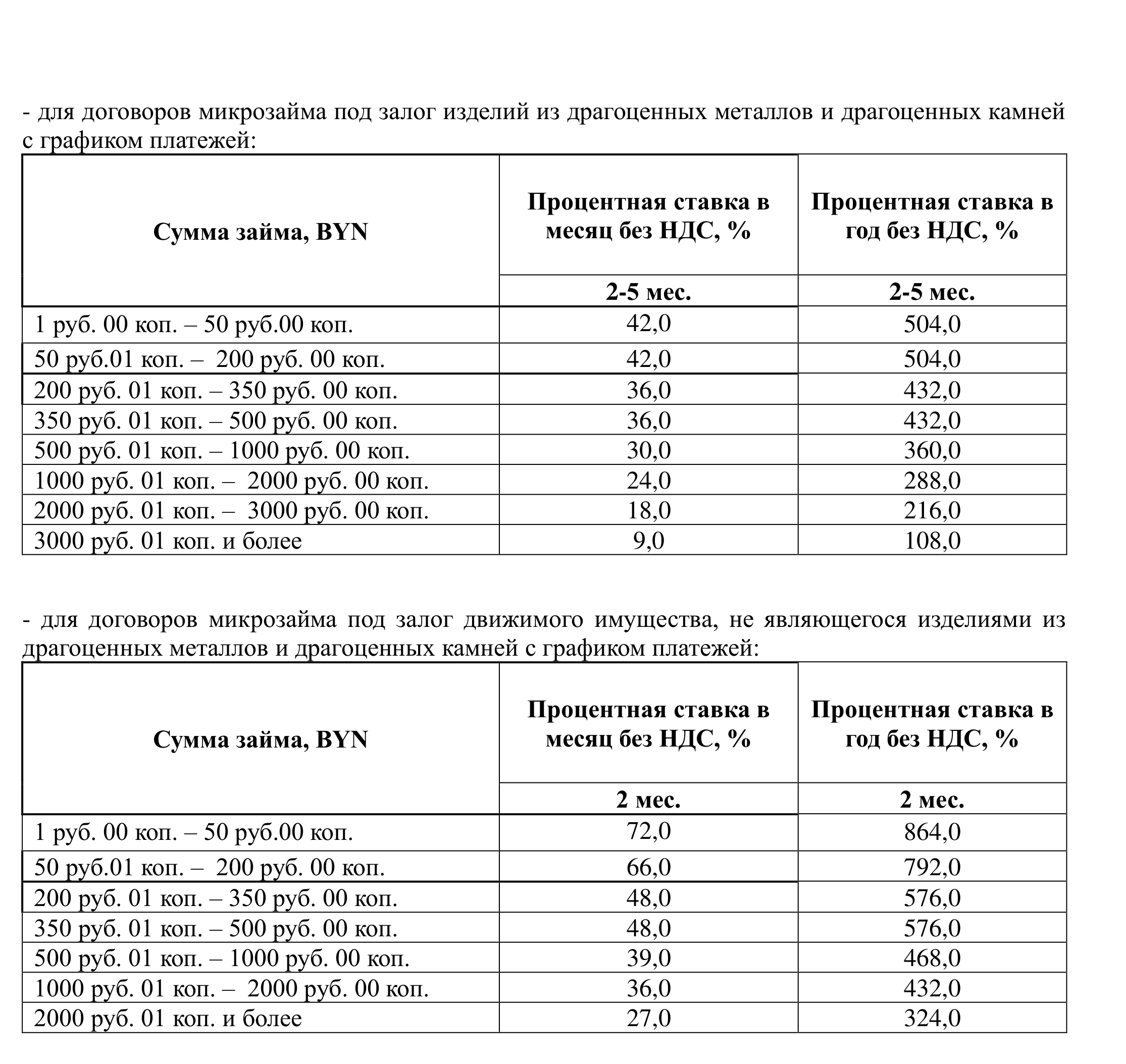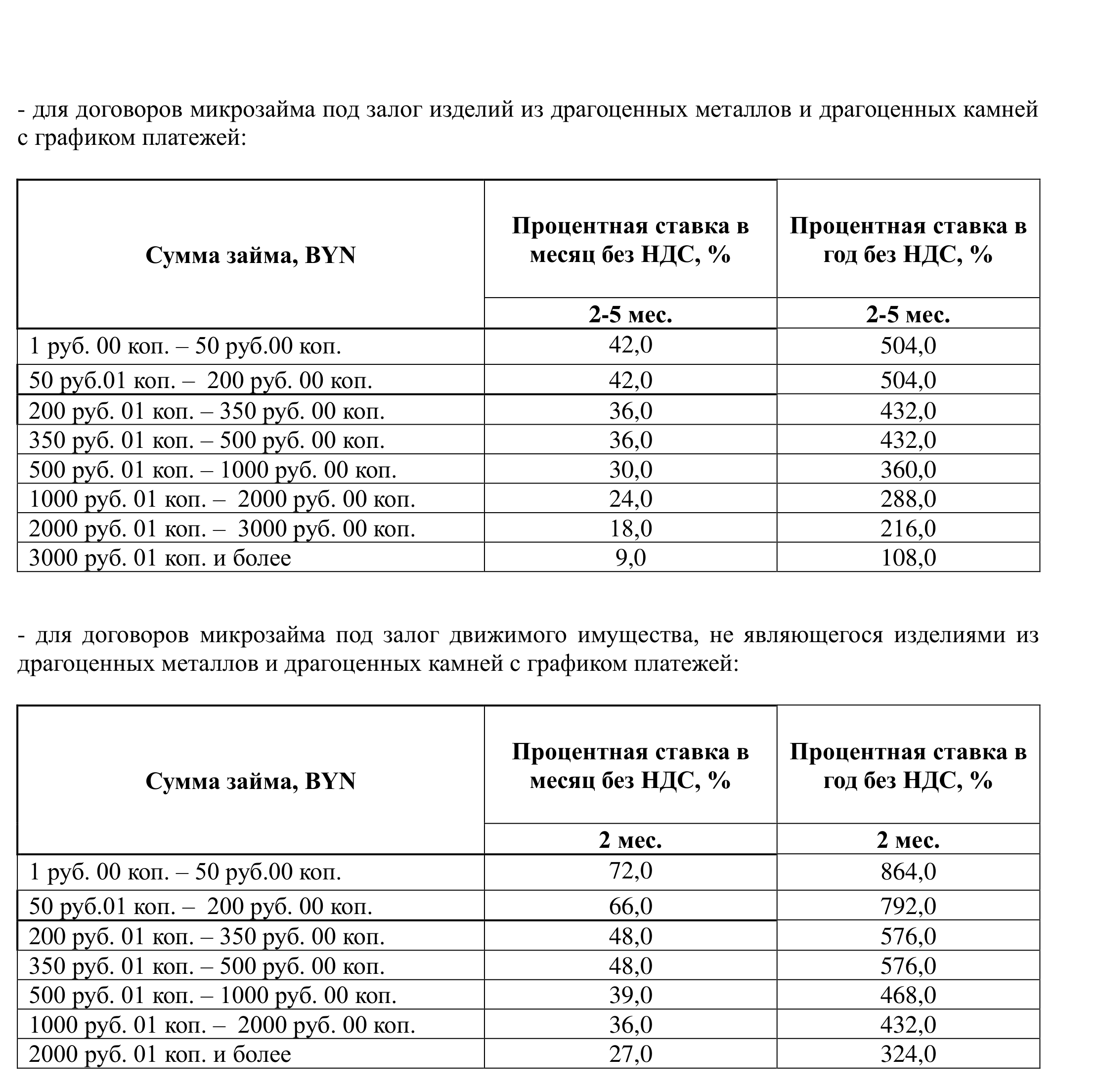 2.1. при заключении договора микрозайма под залог изделий из драгоценных металлов и