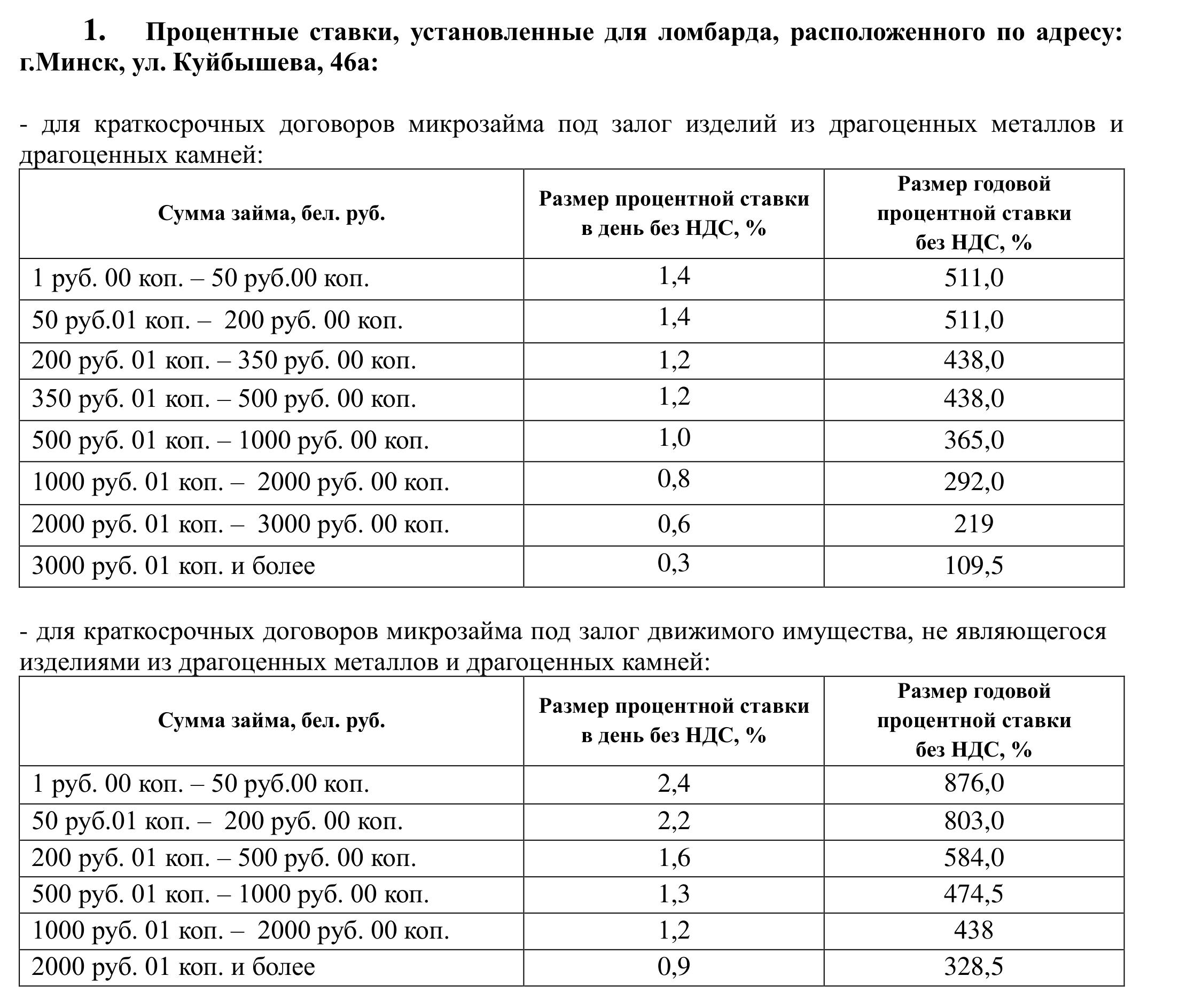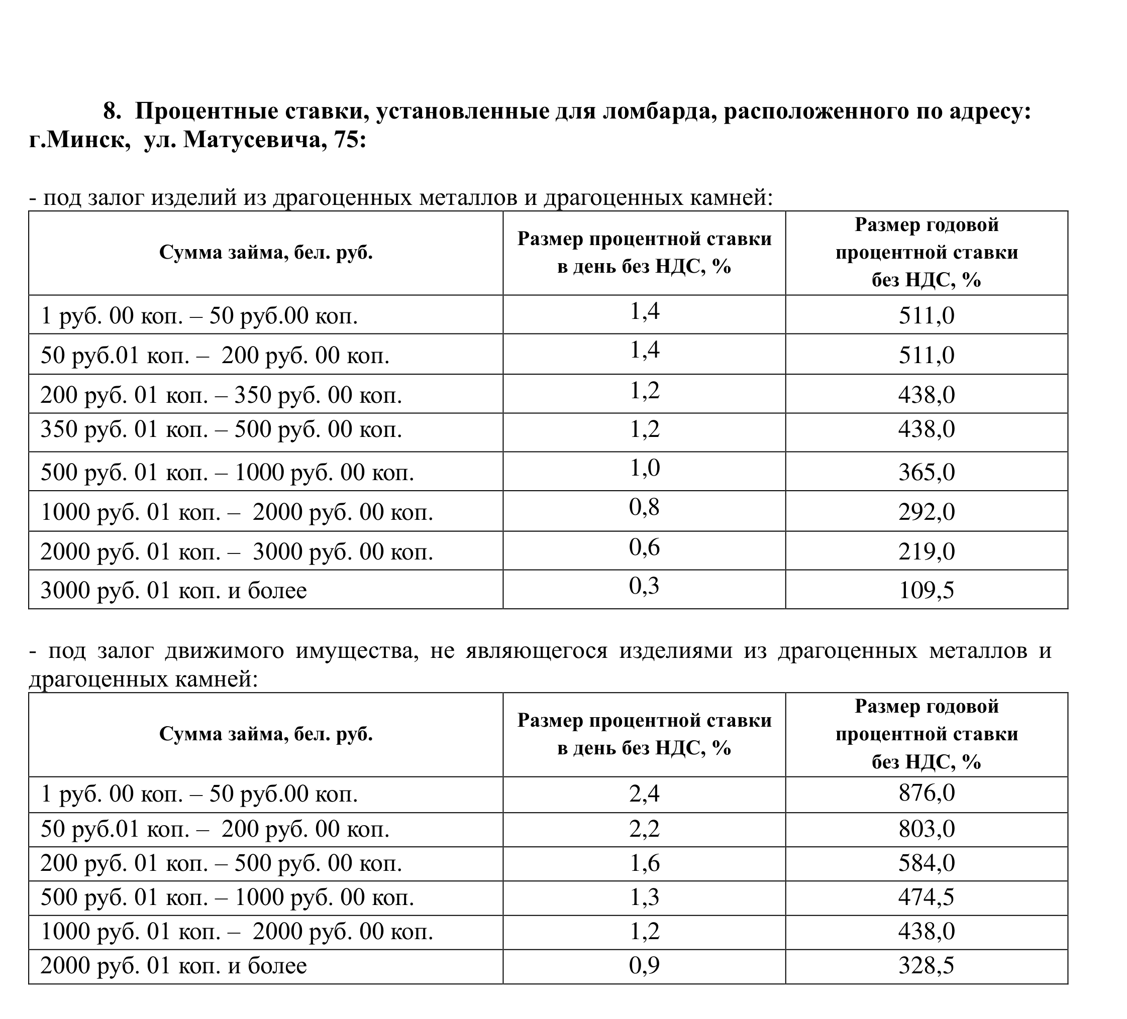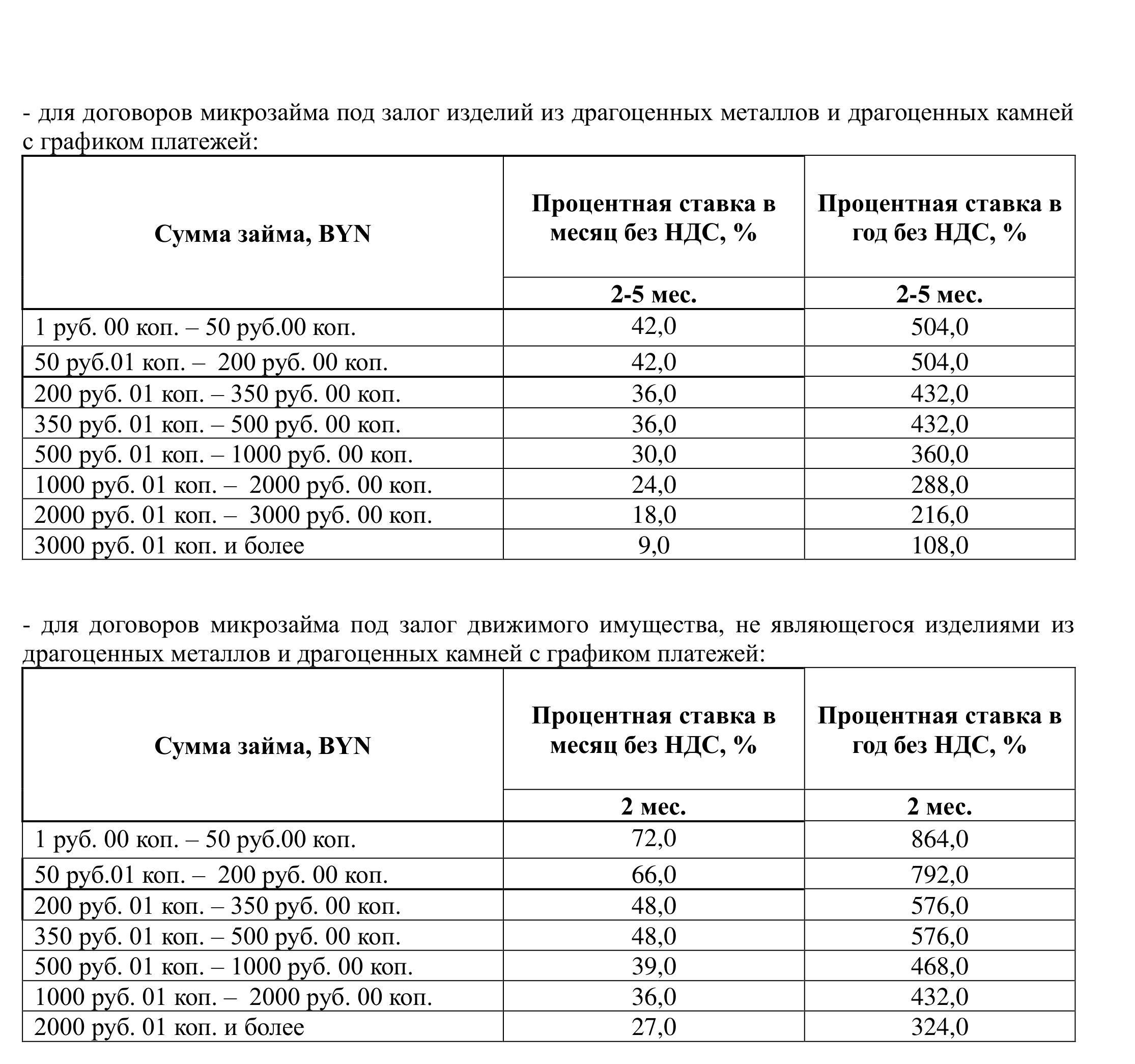 2.1. при заключении договора микрозайма под залог изделий из драгоценных металлов и