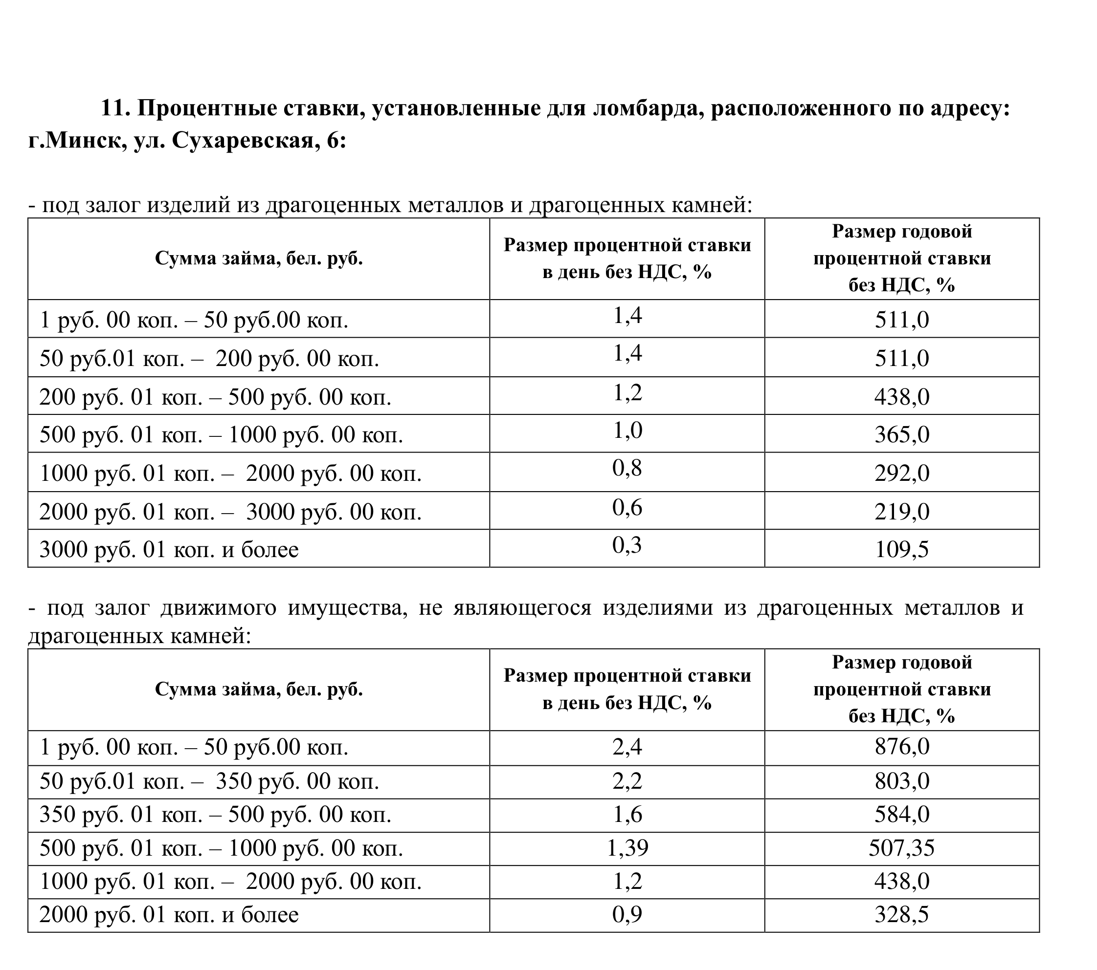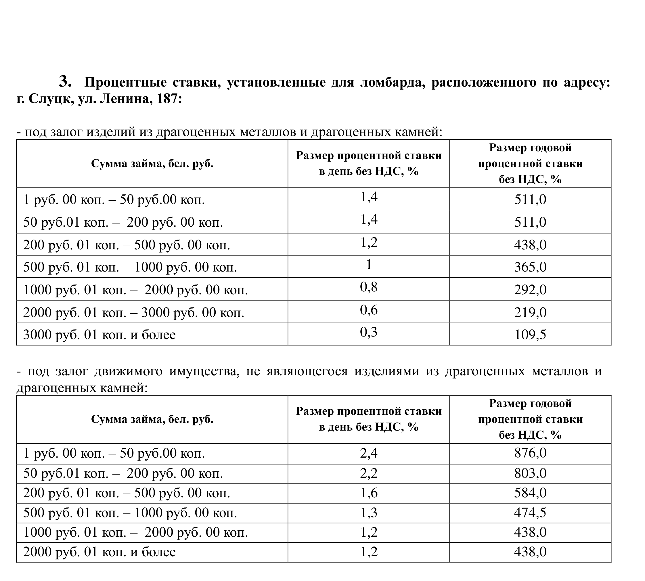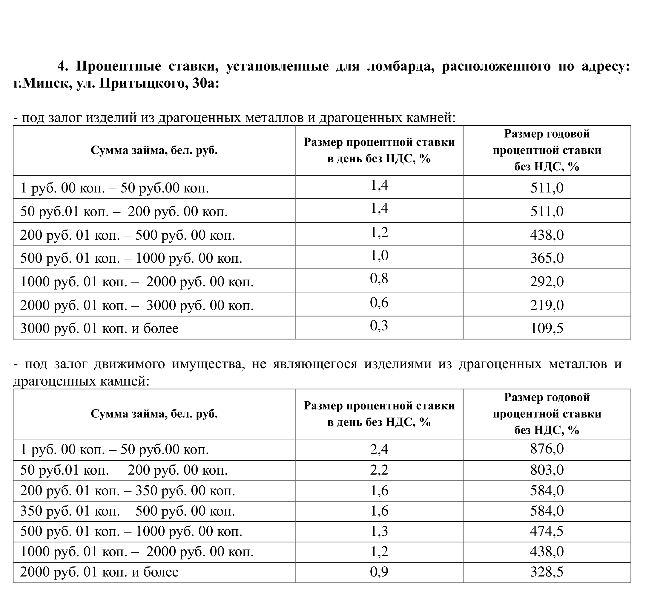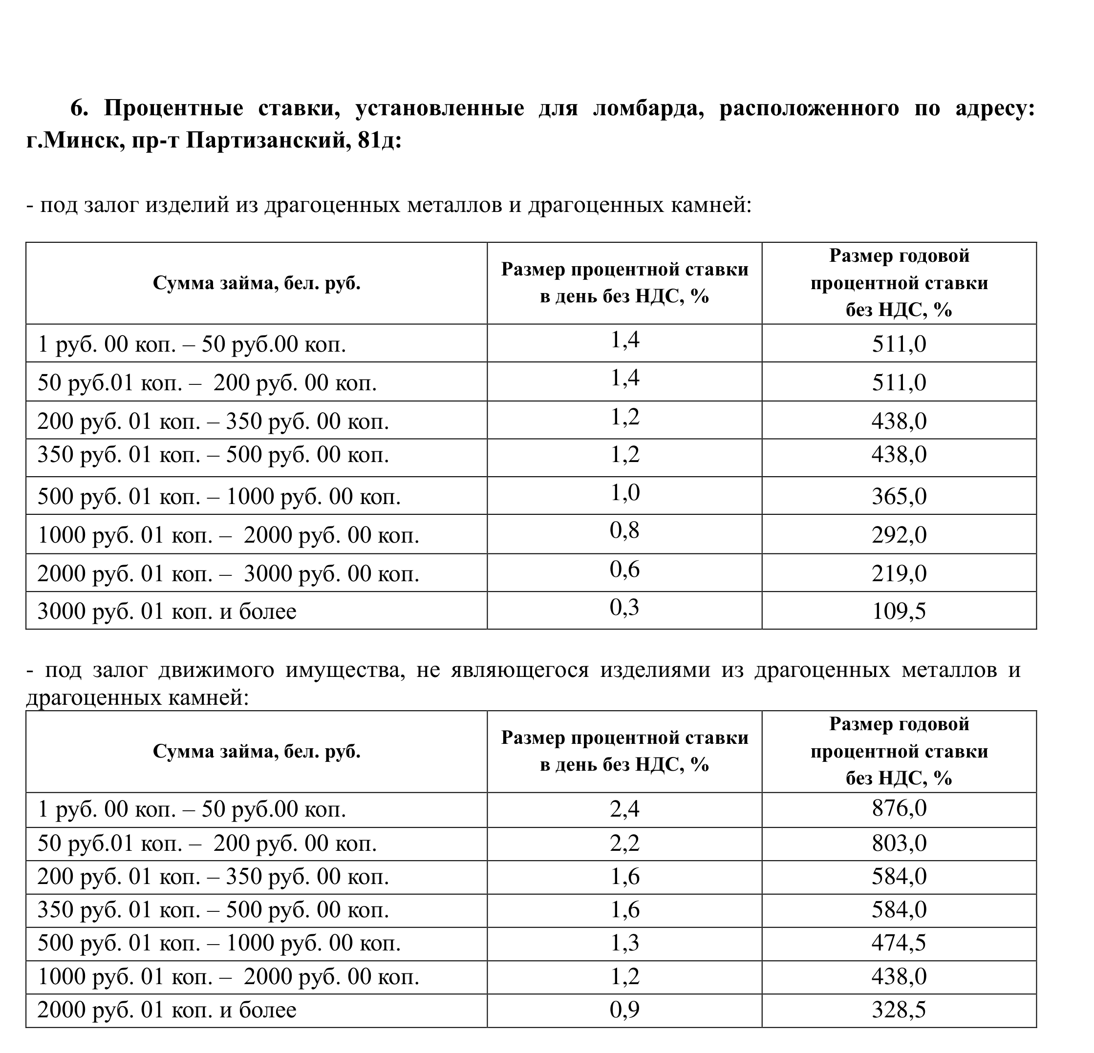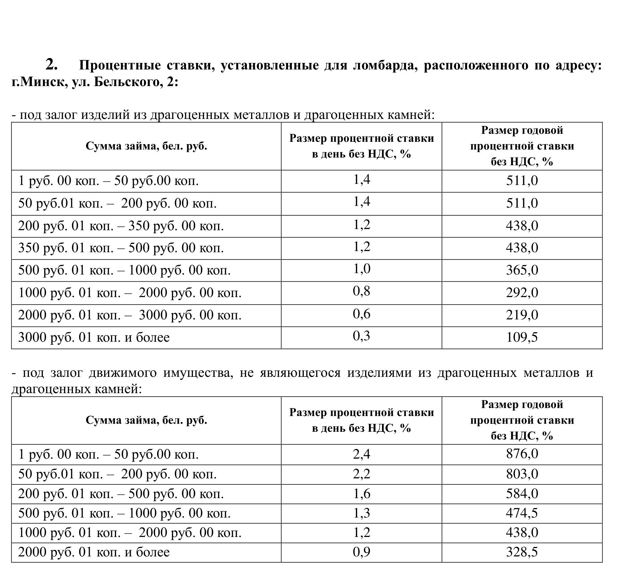 ломбардов согласно приложению №2 Правил;
