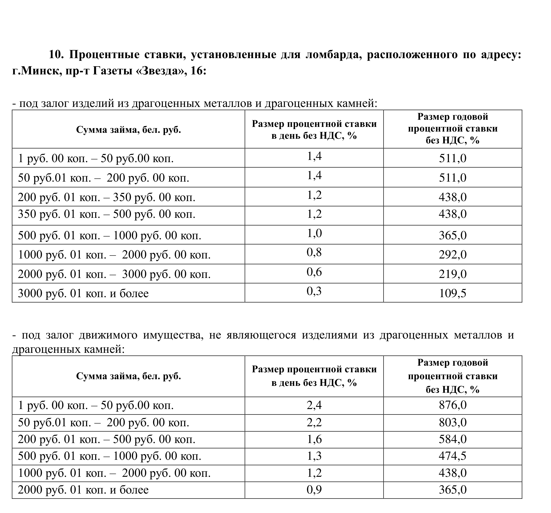 пониженные ставки - минус 10% от процентных ставок, установленных для ломбардов согласно