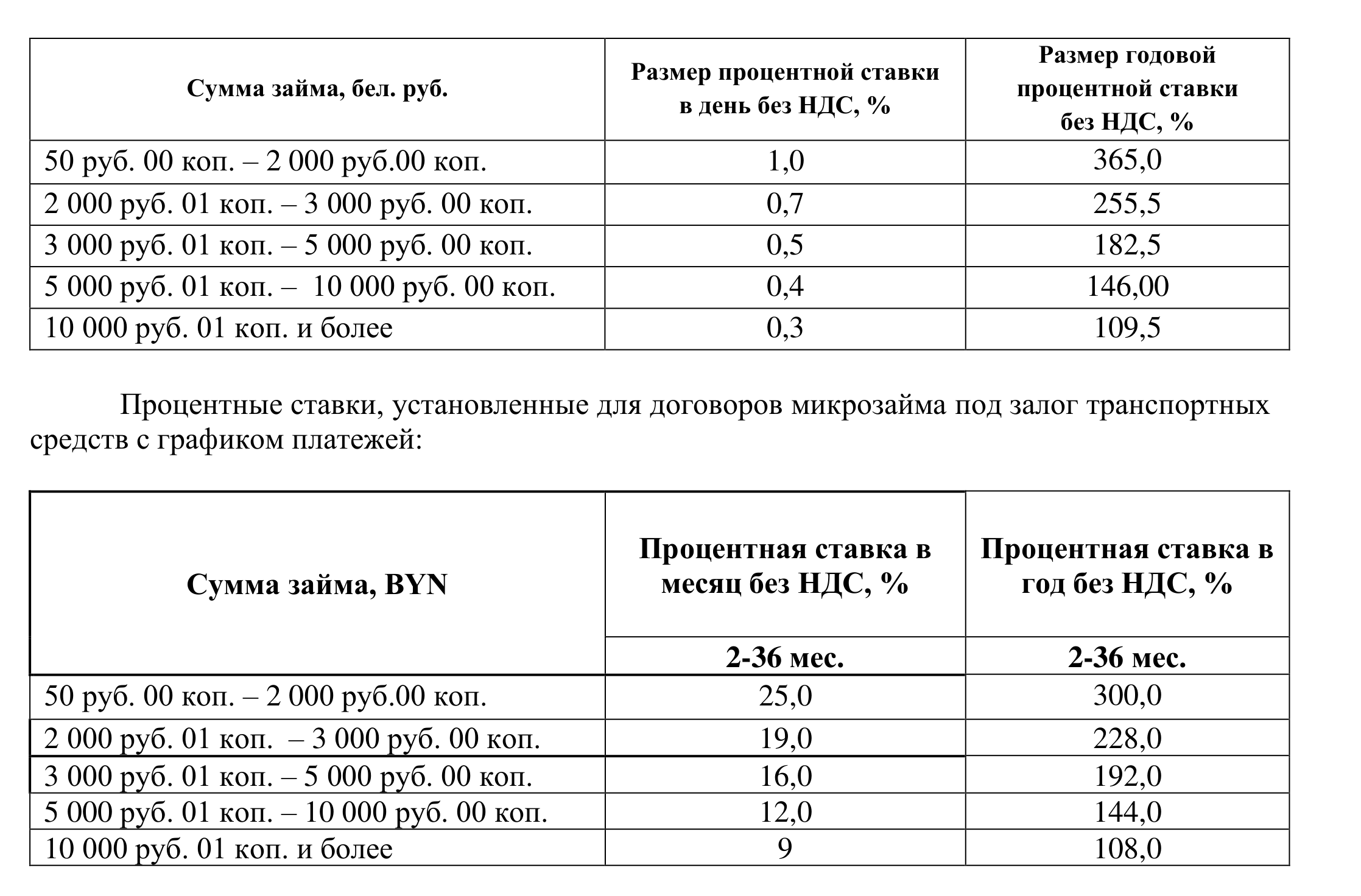 ПРОЦЕНТНЫЕ СТАВКИ, УСТАНОВЛЕННЫЕ ДЛЯ ДОГОВОРОВ МИКРОЗАЙМА ПОД ЗАЛОГ ТРАНСПОРТНЫХ СРЕДСТВ